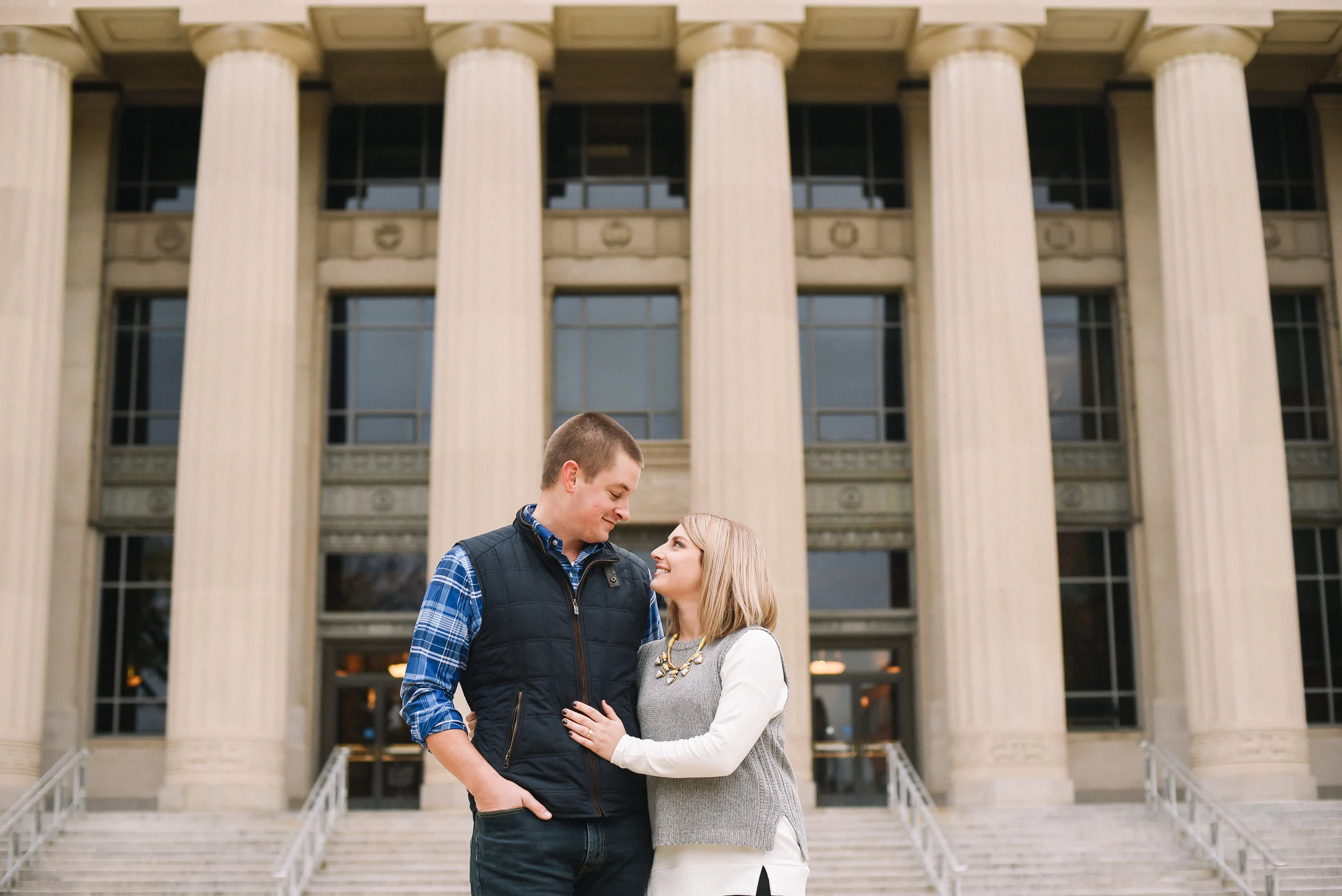 When I moved, I’d heard how gorgeous the Law Quad at University of Michigan was, and how popular it was for photos. I am so glad that Eberly and Taylor agreed to let me take their engagement photos there- it did not disappoint! It was beautiful! I’m super excited to work with Taylor and Eberly (who totally has a movie star name, am I right??) next year for their Detroit area wedding!