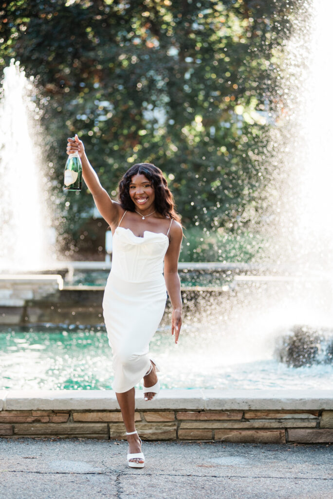 This is your classic, “I graduated from Michigan State” moment. Cap toss, champagne pop, walking shots—this is the energy. It’s bold, iconic, and always makes the final gallery.