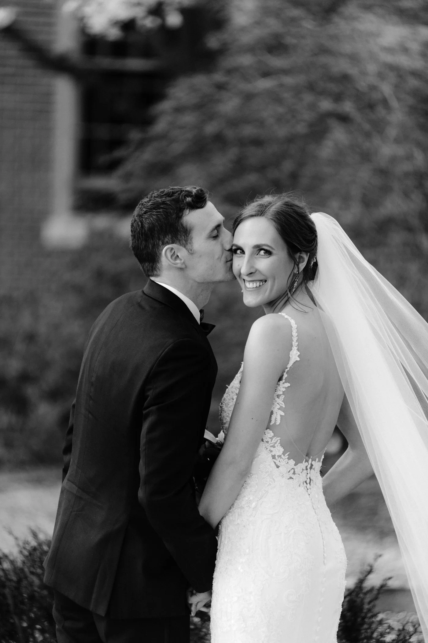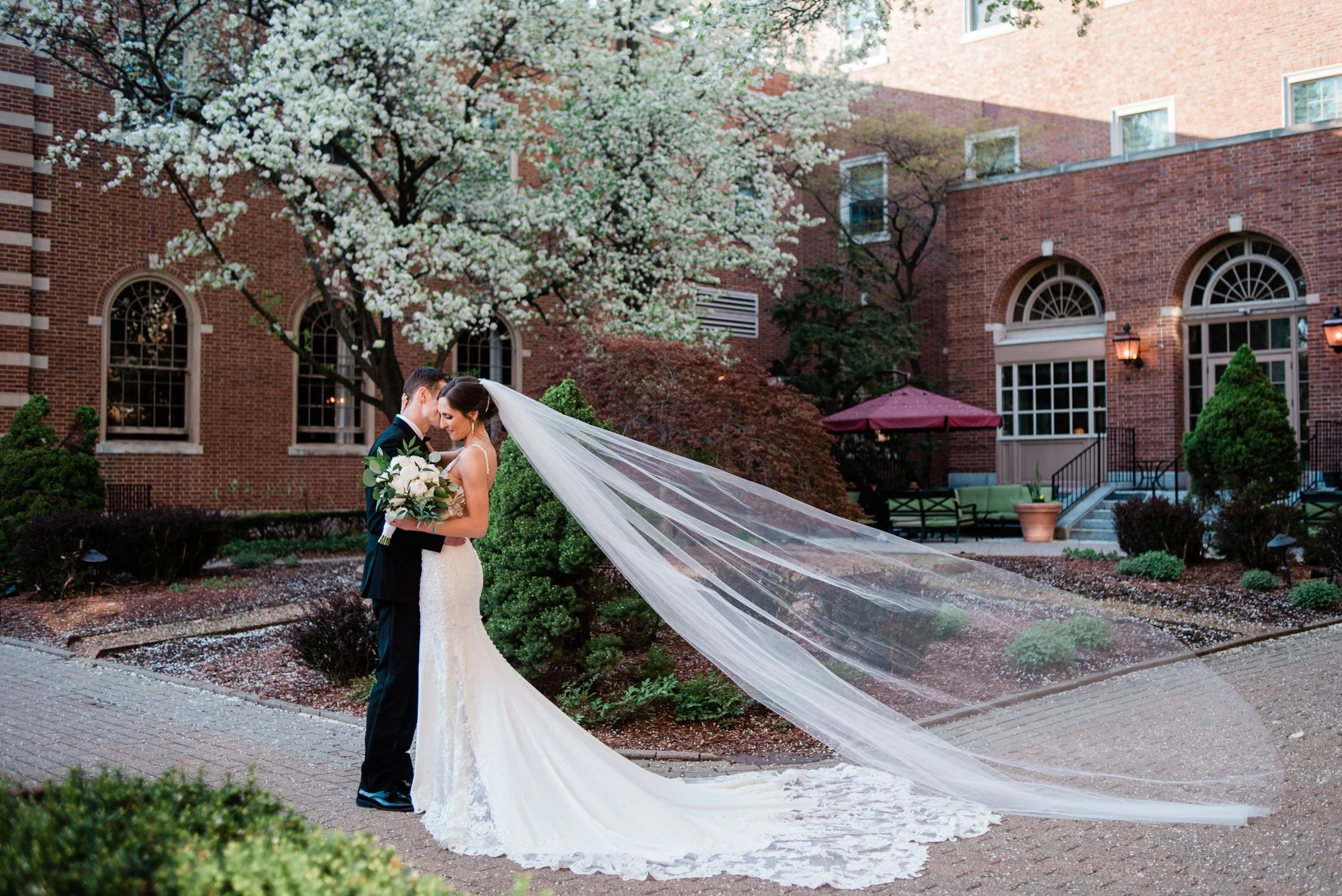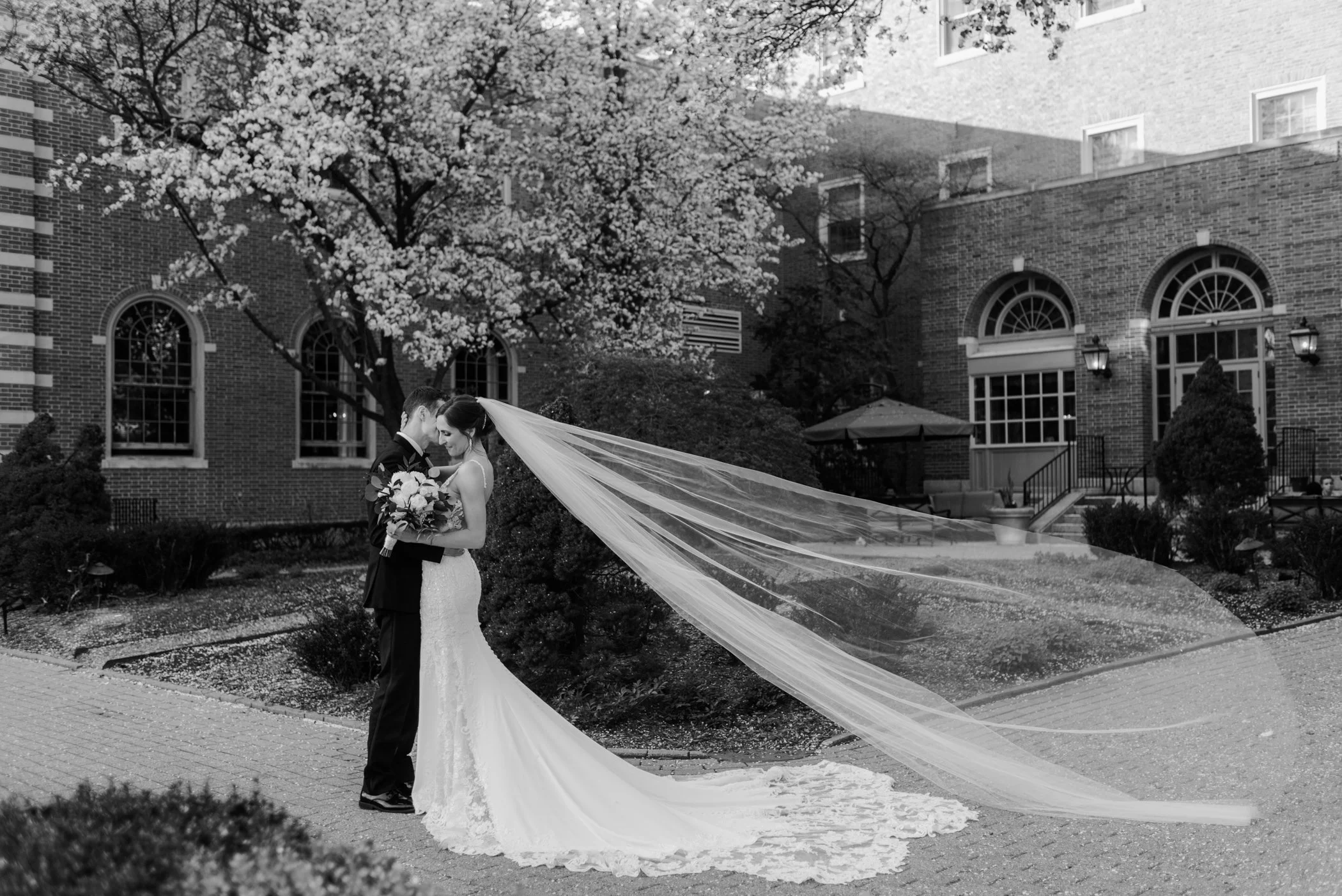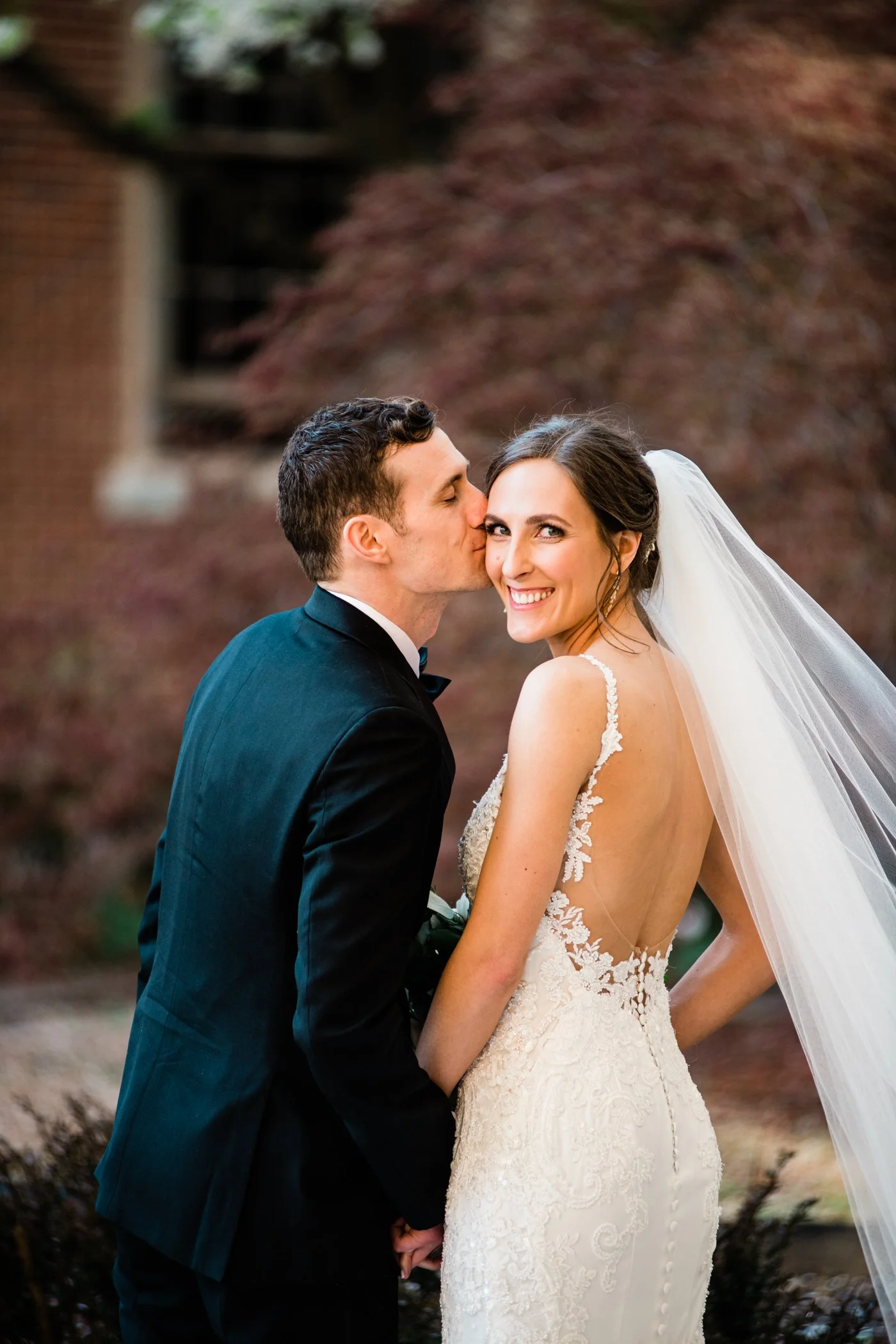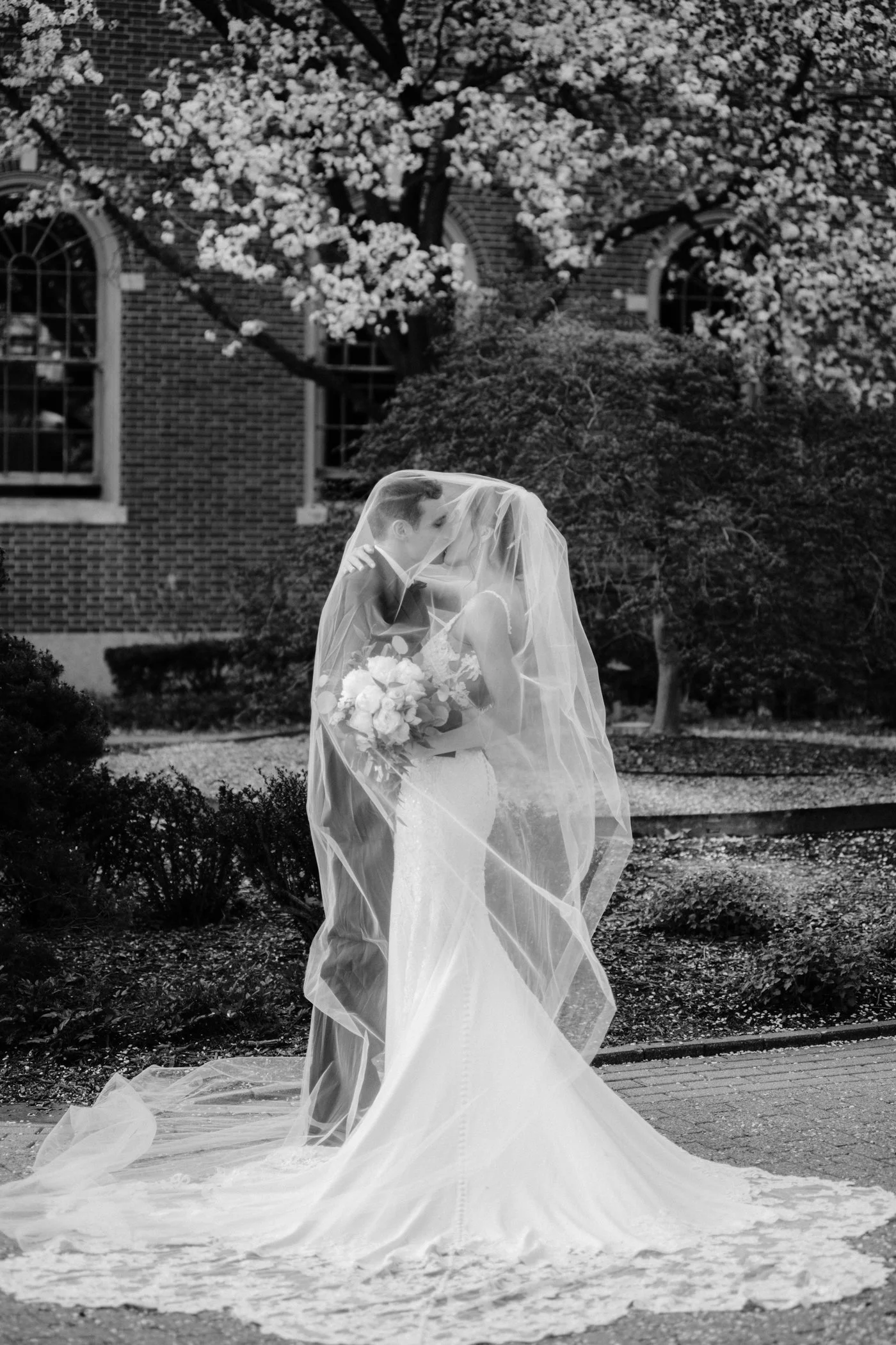 Megan and Brad were originally supposed to be married in April 2021, but indoor weddings were still restricted in Michigan at that time, so they decided to postpone until spring of 2022. They ended up with the most gorgeous weather- sunny and no humidity, in the 70s with a light breeze. There were pink and white blooming trees everywhere which really made the portraits look extra beautiful.