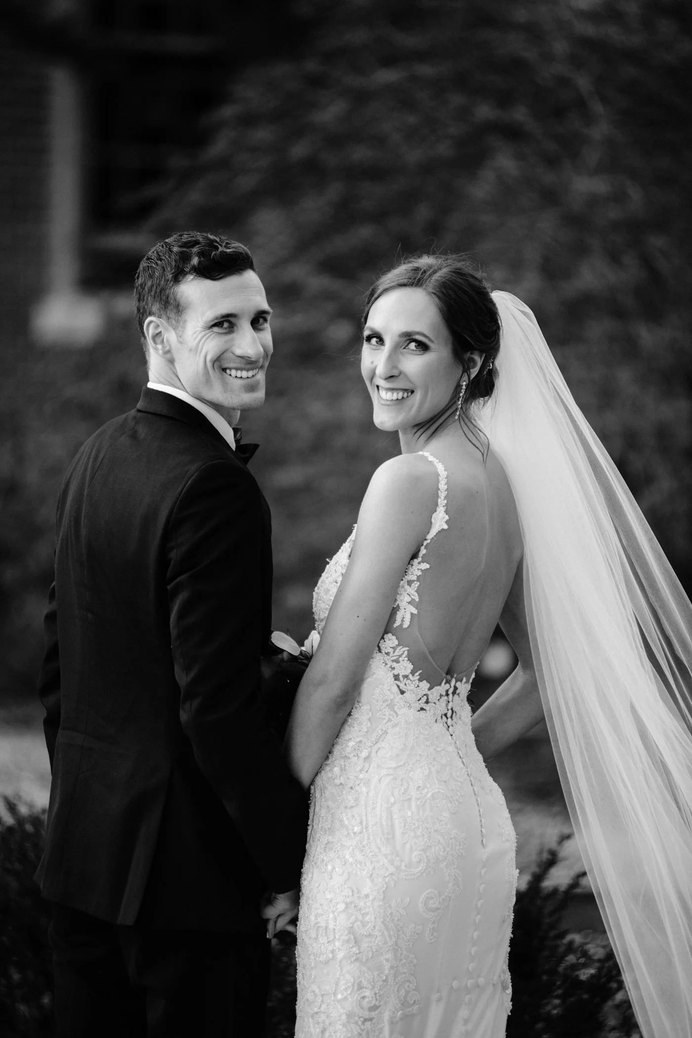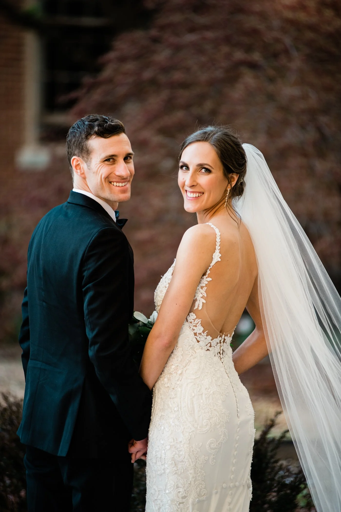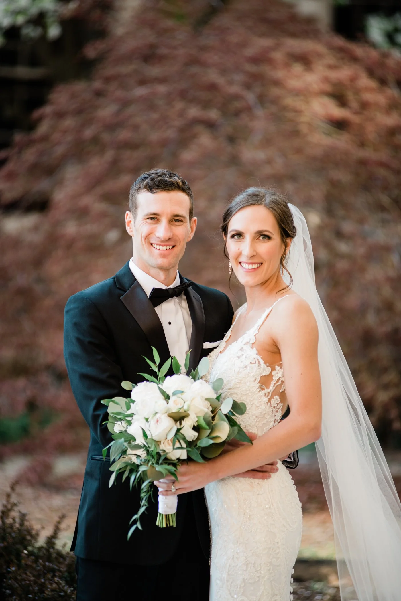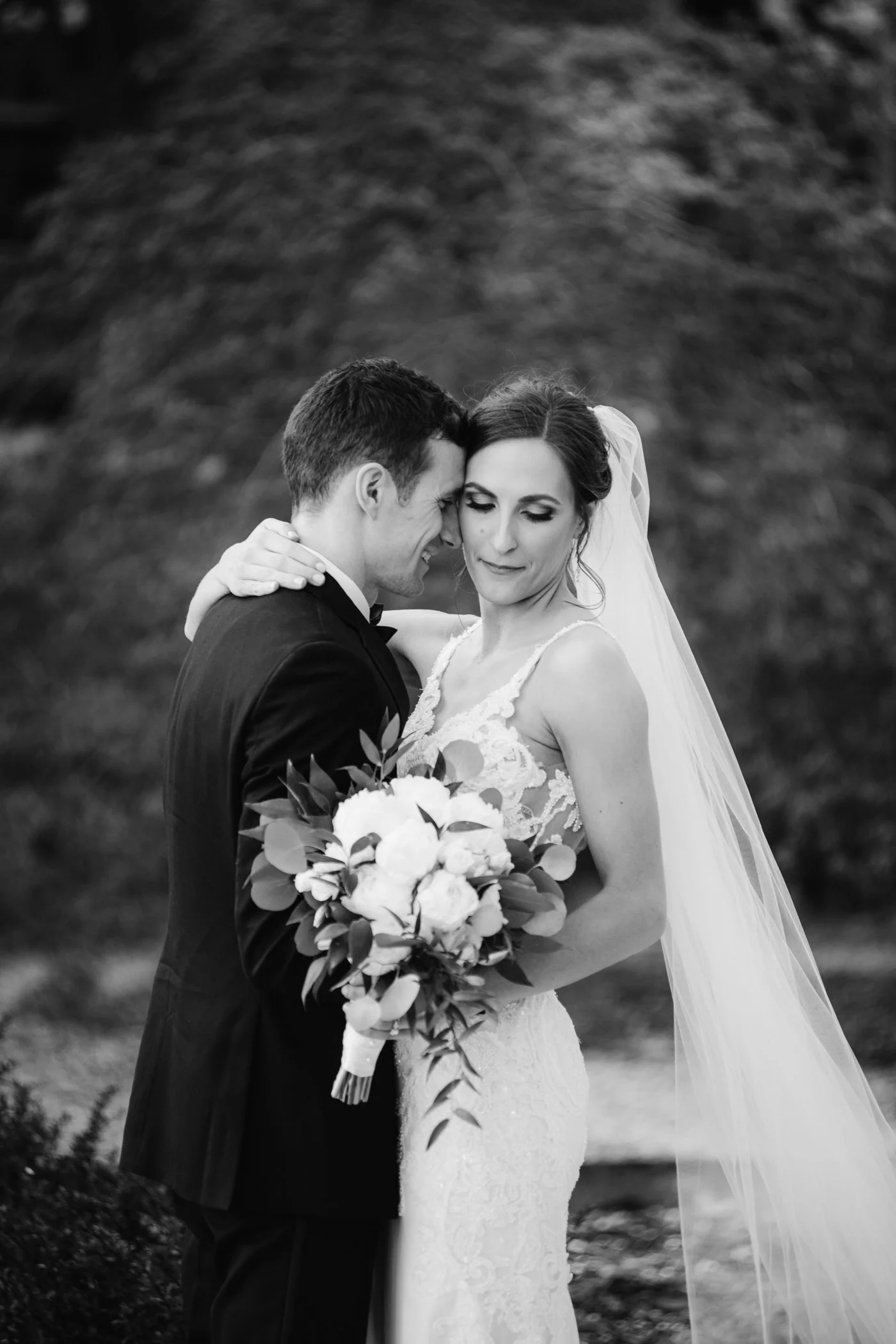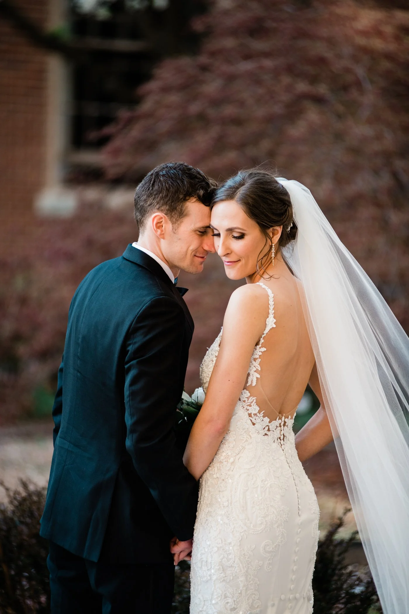 Megan and Brad were originally supposed to be married in April 2021, but indoor weddings were still restricted in Michigan at that time, so they decided to postpone until spring of 2022. They ended up with the most gorgeous weather- sunny and no humidity, in the 70s with a light breeze. There were pink and white blooming trees everywhere which really made the portraits look extra beautiful.